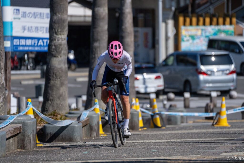 ドイツの全国大会に出ていると言う事で遅い訳がありません。会場で姿を見ると想像通り、細めの高身長。もう見た目が早すぎます。午後の試走で発見したので後ろにこっそり付かせてもらい偵察。