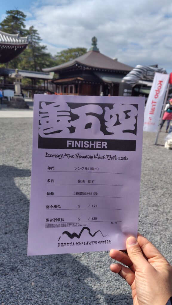 ロードは昨年より2分位早く走れていました。その後、トレイルもそこまで渋滞せずに進むことができましたが、寺前の岩場の下りで少し詰まってしまいました。その後はほぼ詰まる事無くスムーズに進めました。