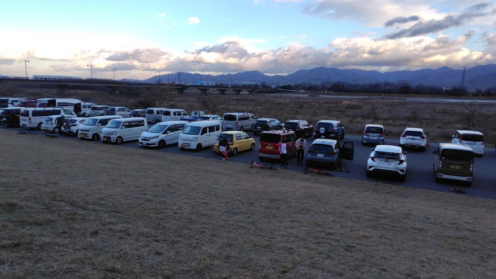 今年は寒波の影響で雪が降って桜三里を超えられないのではという不安がありましたが、雪は積もらず現地へ来れました。ただ風がめちゃくちゃ強くて高速は50km~80km制限。自転車はルーフキャリアなのでちょっと不安でした。