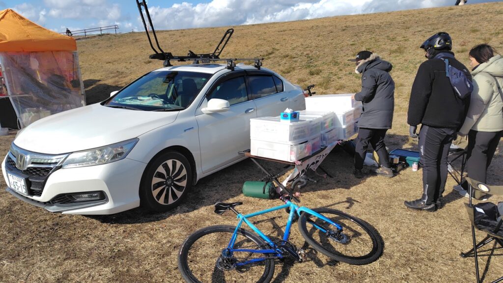 朝5時に起きて風が強かったのでテントの重りに水を入れたりしてると6時前に出発となり到着が7時20分頃。試走が7時30分からなので、とりあえず自転車セッティングして受付して試走。